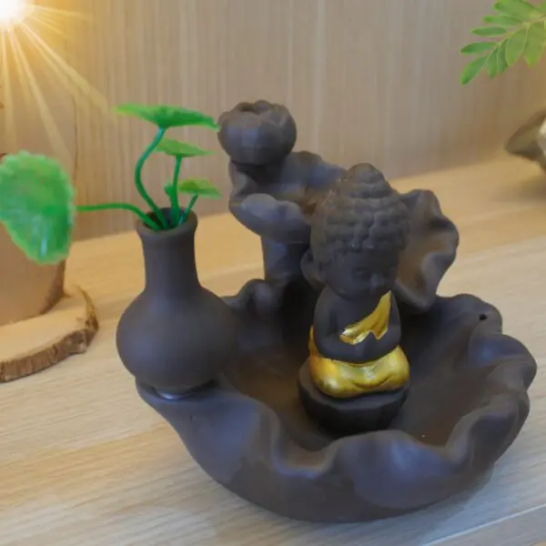 - Model 2: Little Monk on Lotus Burner – Features a serene young monk meditating atop a lotus platform, evoking a peaceful, tranquil atmosphere. The smoke flows gently around the figurine, as if enveloped in a meditative mist.