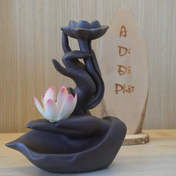 - Model 1: Hand Holding Lotus Burner – Inspired by the image of Buddha’s hand gently lifting a lotus blossom, symbolizing purity and enlightenment. The abstract, flowing design allows incense smoke to cascade elegantly through the lotus petals.