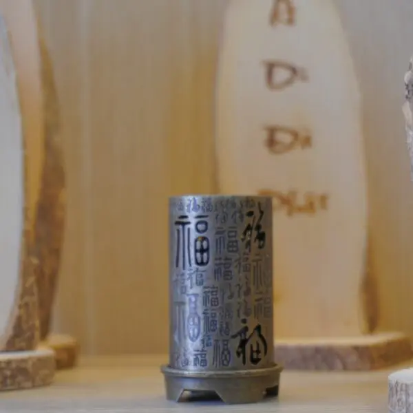 - Model 1 – Round Cylinder: Vertical calligraphy engraving symbolizing peace and abundance